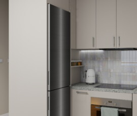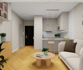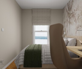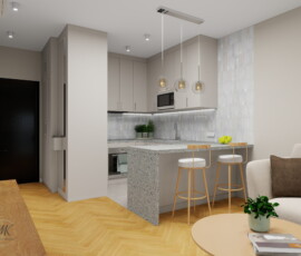 Ta niewielka kawalerka została zaprojektowana z myślą o młodej osobie studiującej, łącząc funkcjonalne miejsce do nauki, odpoczynku i codziennego życia. Każdy element wnętrza został starannie przemyślany, aby maksymalnie wykorzystać przestrzeń i zapewnić komfort codziennego użytkowania.